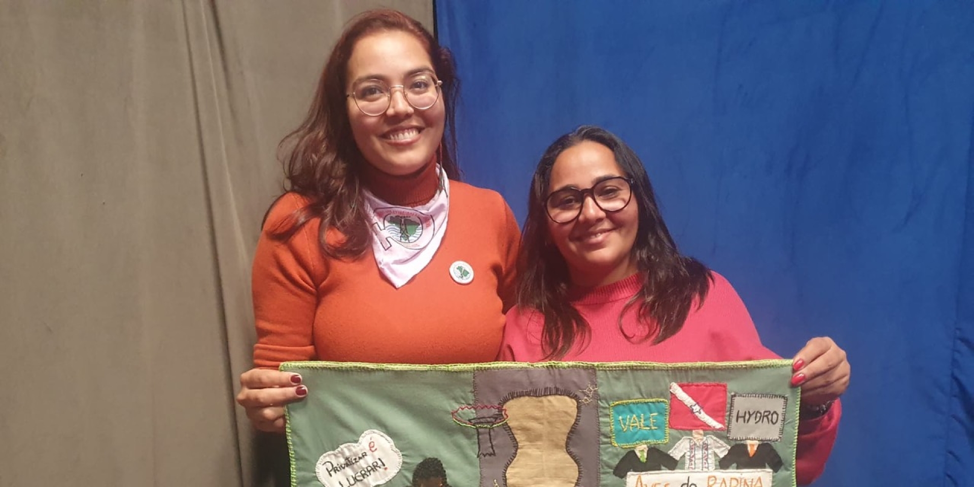 At the heart of the piece are the arpilleras themselves. Born during the Chilean dictatorship as a clandestine form of testimony by women whose voices were silenced, the practice has been carried forward by women in Brazil—many of them affected by dams, mining, and large-scale infrastructure projects that have destroyed rivers, land, and livelihoods. Stitch by stitch, the fabric records what official narratives omit: displacement, grief, resilience, and collective care.